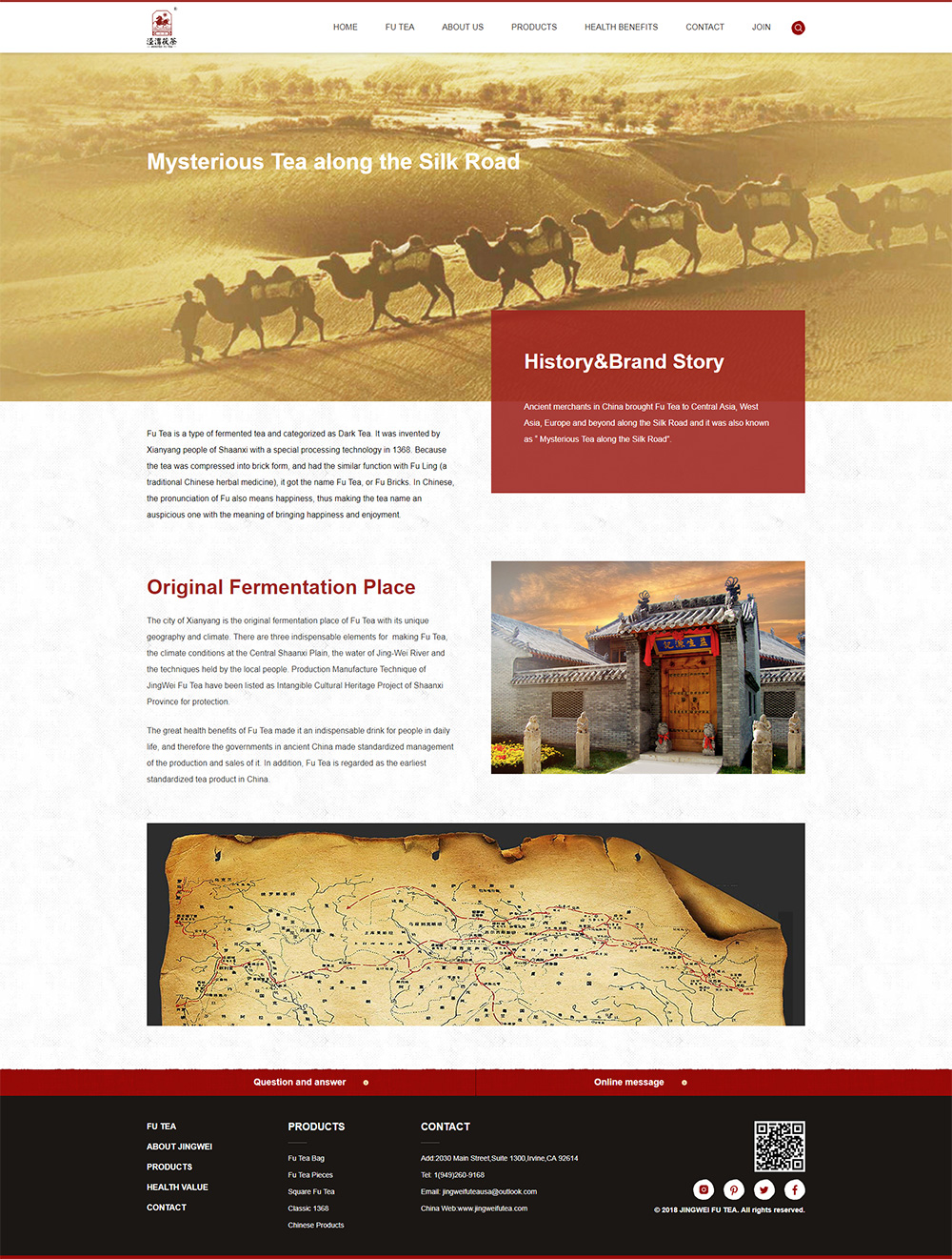 Founded in California in 2018, we, JingWei Fu Tea USA Inc. is the first wholly-owned subsidiary of Xianyang Jingwei Fu Tea Co., Ltd, a famous Chinese tea enterprise and a leading enterprise in national agricultural industrialization, and is mainly responsible for the brand construction and product sales of Jingwei Fu Tea in America.