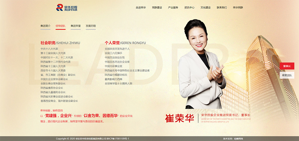 榮華控股企業(yè)集團1994年創(chuàng )立,是一家大型綜合性民營(yíng)企業(yè)集團,現有員工3000余人,資產(chǎn)總額百余億元。旗下產(chǎn)業(yè)涵蓋健康頤養、幸福物業(yè)、綠色建筑、生態(tài)農業(yè)、金融投資等領(lǐng)域,多產(chǎn)業(yè)板塊協(xié)同發(fā)展,致力于為天下百姓幸福生活提供綜合解決方案,努力向現代化、國際化“城市配套生活引領(lǐng)者”轉型升級。