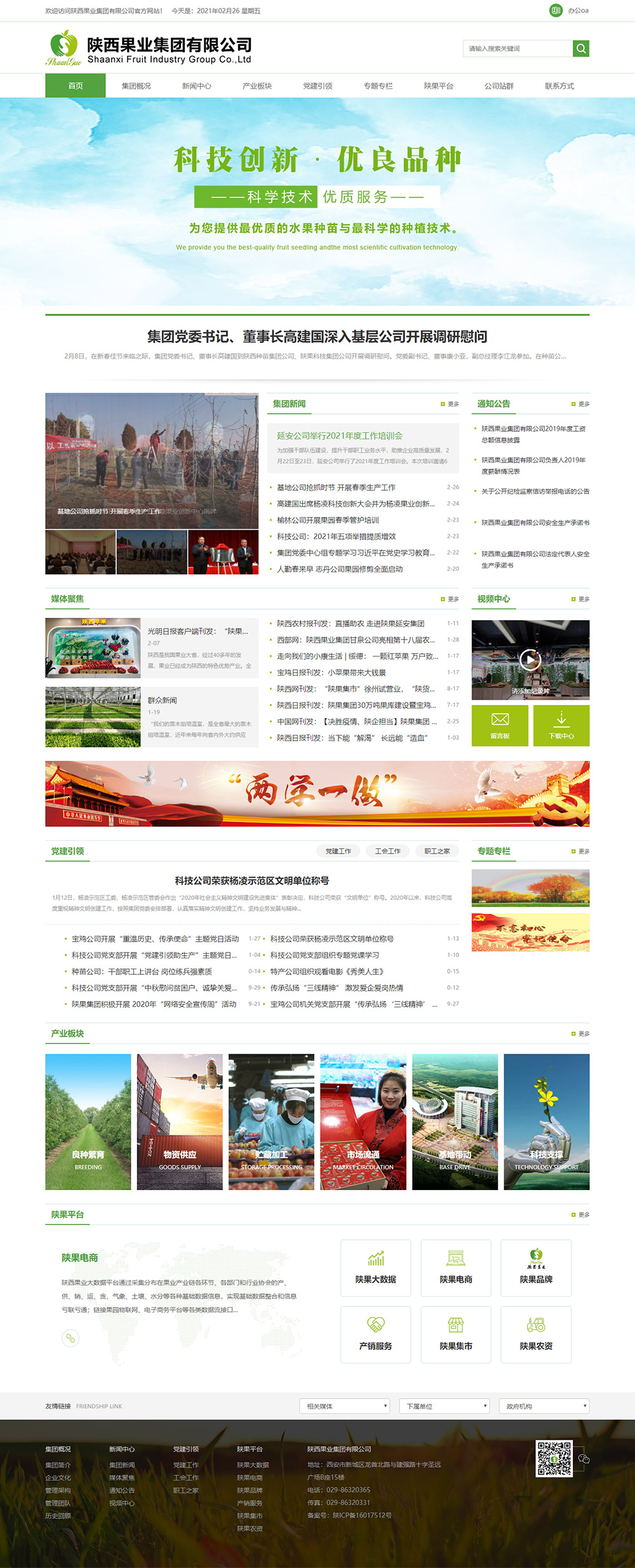 陜西果業(yè)集團是省政府組建的國有企業(yè),2015年10月掛牌成立,注冊資本金5億元。組建陜果集團是省政府按照現代工業(yè)、流通、金融、生態(tài)理念,“實(shí)施大企業(yè)集團引領(lǐng)戰略”,推動(dòng)我省果業(yè)轉型升級,實(shí)現由果業(yè)大省向果業(yè)強省轉變的一項重要舉措。